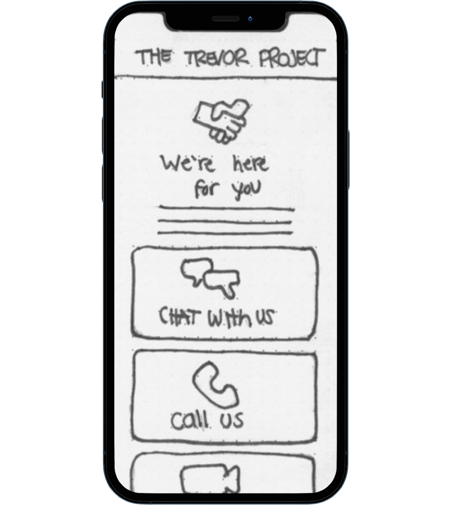 In the User Journey Map, I learned that users need more communication with friends or family throughout their day. Therefore, I thought about how family, friends, and counselors could have active communication with the user through The Trevor Project.