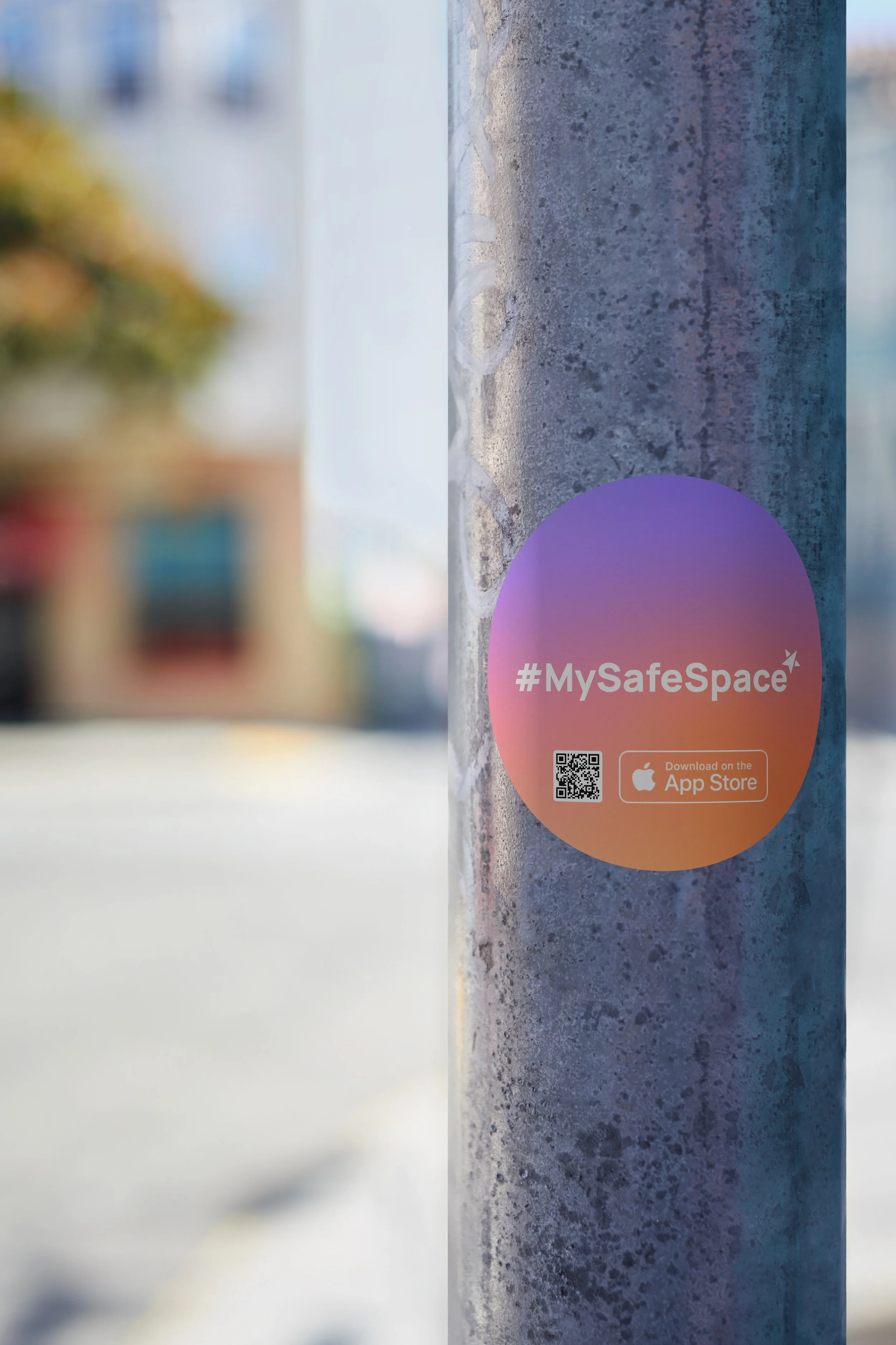 Posters would be displayed around busy public transportation areas to spread inclusivity. In addition, stickers would be distributed at events for the user to place in a safe space, with a QR code leading them to download The Trevor Project app.